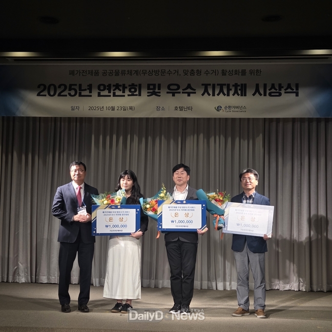 (데일리대구경북뉴스=황지현 기자)구미시는 10월 23일 환경부가 주최한 ‘2025년 폐가전제품 무상방문수거 우수지자체 경진대회’에서 기초자치단체 부문 은상(환경부 장관상)을 수상했다. 지난해(2024년) 금상에 이어 2년 연속으로 전국 우수 지자체에 이름을 올리며 자원순환 선도도시로서의 위상을 입증했다.