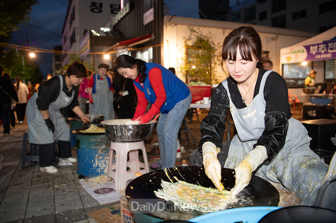 (데일리대구경북뉴스=황지현 기자)구미시는 10월 24일 형곡2동 단체협의회와 주민자치위원회 주관으로 ‘2025 구미밀가리 찌짐축제’를 형남초등학교 앞 도로변 일대에서 열었다. 올해 처음 열린 이번 축제는 형곡2동 주민들의 손맛과 정을 담은 먹거리로 가을밤을 풍성하게 채웠다.