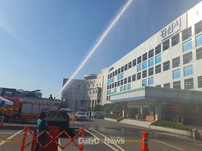 훈련은 시청사 화재 상황을 가정해 경산소방서 중앙119안전센터와의 합동으로 실시됐고, 훈련이 끝난 뒤 소화기 사용법 및 전기차 화재 대응 교육 등을 실시하였다. 직원들의 안전한 이동을 위해 대피경로마다 유도 요원을 배치하고, 경산보건소에서는 구급차를 현장에 대기시켜 응급환자 발생 시 즉각 대응할 수 있도록 했다.