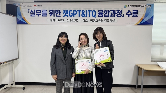 (데일리대구경북뉴스=황지현 기자)김천여성새로일하기센터(센터장 김인수)는 10월 30일, 취업을 희망하는 경력 단절 여성 20명을 대상으로 진행한 직업교육훈련 ‘실무를 위한 챗GPT&ITQ 융합과정’ 수료식을 개최했다.
