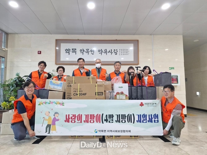 (데일리대구경북뉴스=황지현 기자)칠곡군 약목면 지역사회보장협의체(위원장 손정식)는 10월 한달간 특화사업으로 추진 중인 ‘사랑의 지팡이 지원사업’의 일환으로 관내 저소득 거동 불편한 어르신 70가구에 지팡이를 전달했다.