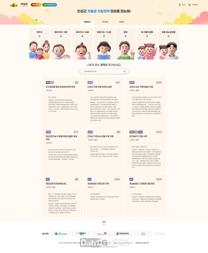 김주수 의성군수는 “저출생 문제는 단순한 출산 장려가 아닌, 군민의 삶 전반을 안전하고 편리하게 만드는 일과 맞닿아 있다”며 “이번 저출생지원정책포털을 통해 군민이 필요한 정보를 쉽고 빠르게 확인할 수 있기를 바라며, 앞으로도 이용 편의를 높이기 위한 서비스를 지속 보완해 나가겠다”고 말했다.