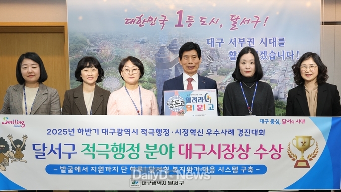 (데일리대구경북뉴스=이준호 기자) 대구 달서구(구청장 이태훈)는 지난 10월 30일 열린 ‘2025년 하반기 대구광역시 적극행정·시정혁신 우수사례 경진대회’에서 적극행정 분야 대구광역시장상(장려)을 수상했다고 밝혔다.