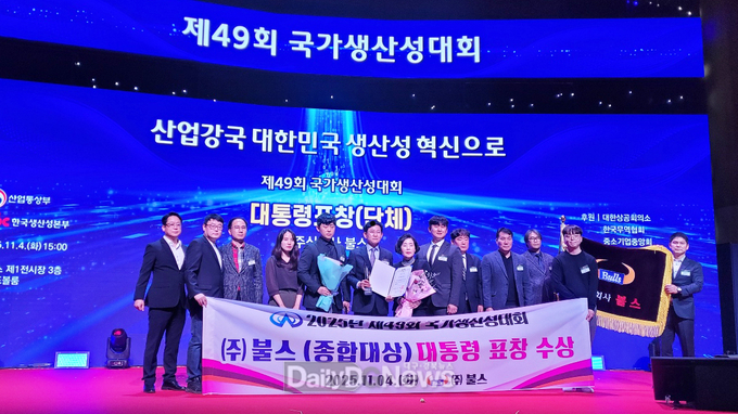 (데일리대구경북뉴스=신명곤 기자)성주군 용암면 소재 ㈜불스가 11월 4일 경기도 고양시 킨텍스에서 열린‘제49회 국가생산성대회’에서 대통령 표창을 수상했다.