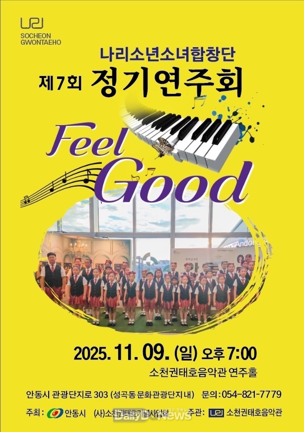 (데일리대구경북뉴스=황지현 기자)(사)소천권태호선생기념사업회(대표 이필근)가 주최․주관하는 ‘제7회 나리소년소녀합창단 정기연주회’가 11월 9일 오후 7시, 소천권태호음악관 실내 연주홀에서 개최될 예정이다.