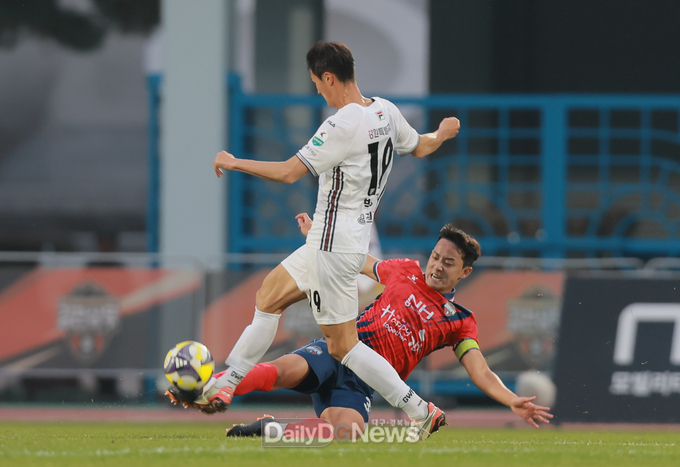 전반 25분, 강원의 페널티박스 앞에서 얻은 프리킥이 수비벽에 걸리며 코너킥이 선언되었다. 이어 약속된 세트피스 전술로 고재현이 슈팅을 시도하며 첫 골을 노렸다. 아쉽게 기회를 놓친 뒤 전반 30분, 강원의 반격에 실점을 허용했다. 이 과정에서 상대 공격수와 경합하던 김민규가 부상을 당하며 김현우와 교체되었다.