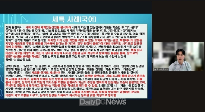 (데일리대구경북뉴스=황지현 기자)경북교육청(교육감 임종식)은 11월 6일 오후 7시부터 도내 일반계 고등학교 300여 명을 대상으로 ‘성공적 학생부종합전형 대비를 위한 교사 역량 강화 연수’를 ZOOM을 통해 비대면으로 실시했다.