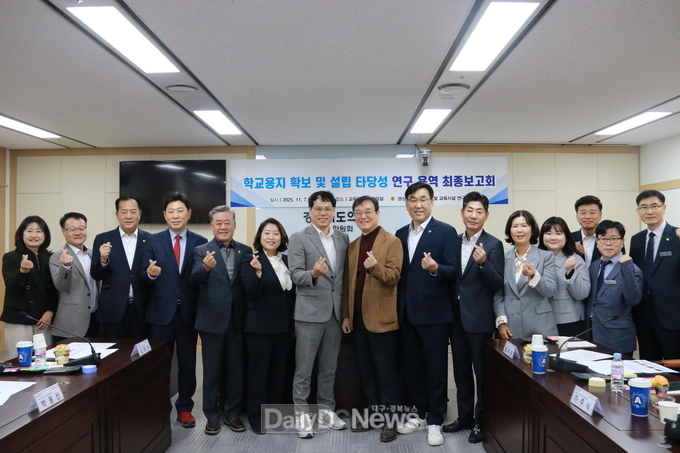 (데일리대구경북뉴스=황지현 기자)경북도의회 의원연구모임인 ‘경상북도 교육정책 및 교육시설 연구회’(대표 윤종호 의원)는 11월 7일 도의회 교육위원회 회의실에서 ‘학교용지 확보 및 설립타당성 연구용역’ 최종보고회를 개최했다.