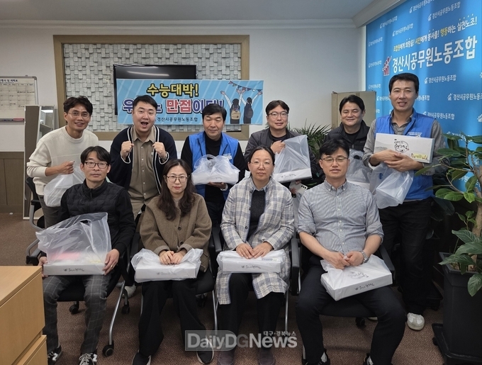 (데일리대구경북뉴스=황지현 기자)경산시공무원노동조합(위원장 이상현)은 11월 7일 수험생 자녀가 있는 조합원 40여 명에게 “수능 합격 기원 찹쌀떡”과 함께 응원의 메시지를 전달했다.