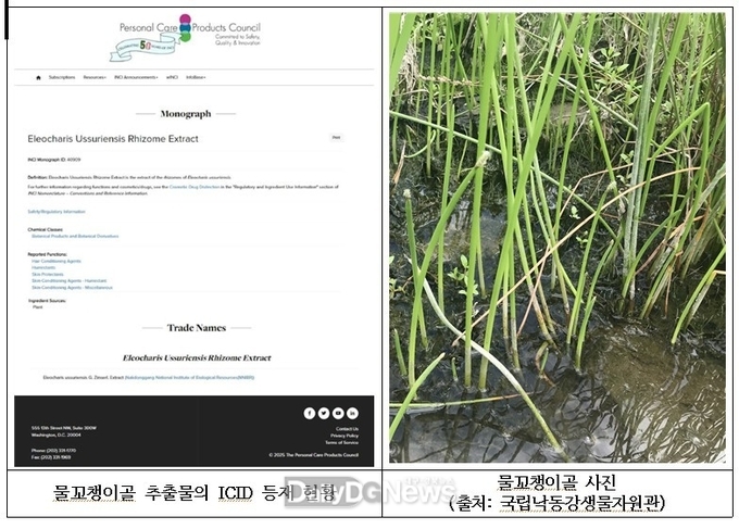 (데일리대구경북뉴스=황지현 기자)기후에너지환경부 산하 국립낙동강생물자원관(관장 용석원)은 11월 10일 최근 담수식물 ‘물꼬챙이골’ 추출물이 국제화장품원료집(International Cosmetic Ingredient Dictionary, ICID)에 신규 등재됐다고 밝혔다.