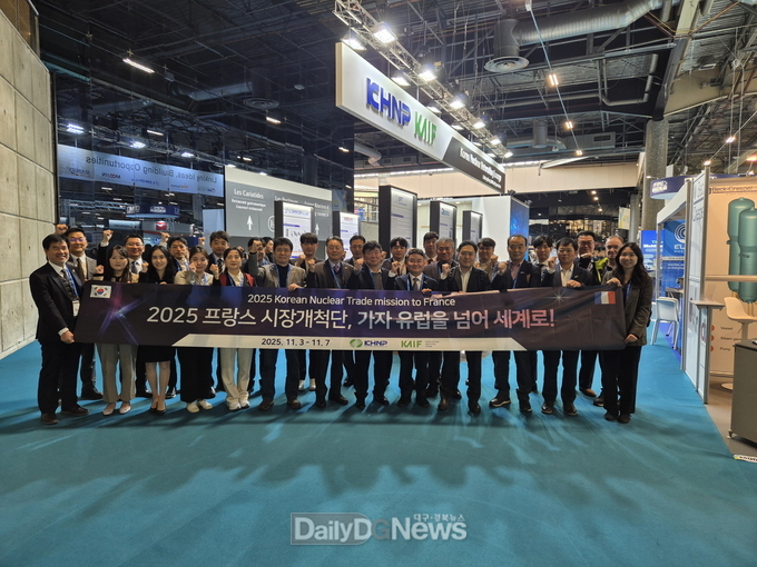 (데일리대구경북뉴스=황지현 기자)한국수력원자력(이하 한수원)이 11월 3일부터 7일까지(현지시간) 프랑스 파리에서 열린 ‘2025 세계원자력전시회(World Nuclear Exhibition, 이하 WNE)’에서 한국원자력산업협회 및 협력 중소기업 20개 업체와 함께 해외판로 개척 지원 활동을 펼쳤다.