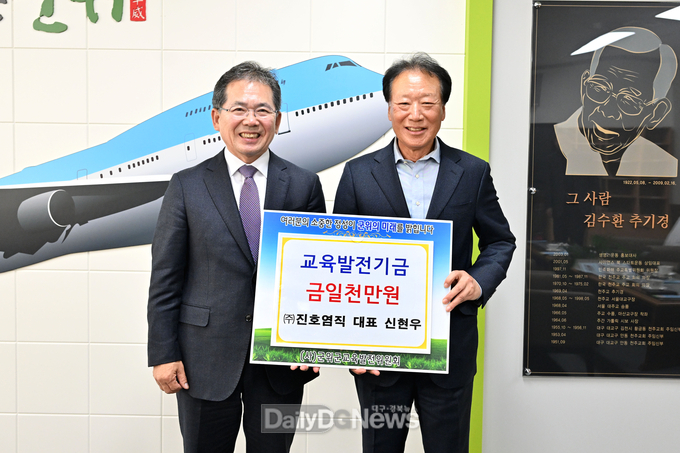 (데일리대구경북뉴스=황지현 기자)진호염직(주) 신현우 대표는 11월 10일 군위군청을 방문해 지역의 교육 발전과 인재양성을 위해 써달라며 1,000만원의 교육발전기금을 기탁했다.
