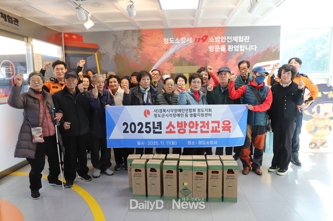 (데일리대구경북뉴스=황지현 기자)청도소방서는 11월 11일 청도소방서 소방안전체험관에서 청도군시각장애인 및 활동지원사 30여명을 대상으로 소방안전교육을 실시했다.