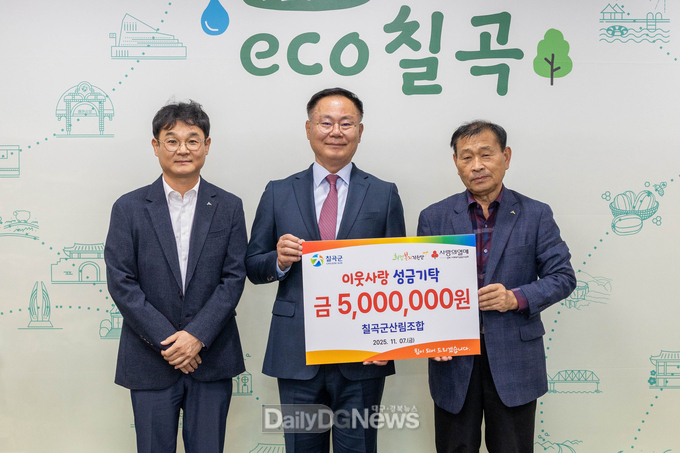 칠곡군산림조합(조합장 이택용)은 나눔으로 행복한 세상을 만들기 위해 11월 7일 칠곡군청을 방문하여 관내 저소득 가구를 위해 사용해달라며 500만원을 기탁했다.