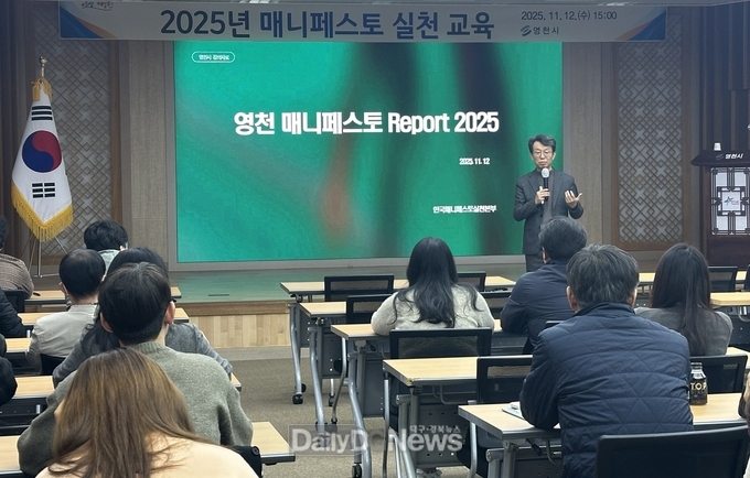 (데일리대구경북뉴스=양승미 기자)=영천시는 12일 시청 대회의실에서 민선8기 공약사업 팀장 및 담당자 60명을 대상으로 ‘매니페스토 실천 교육’을 실시했다.
