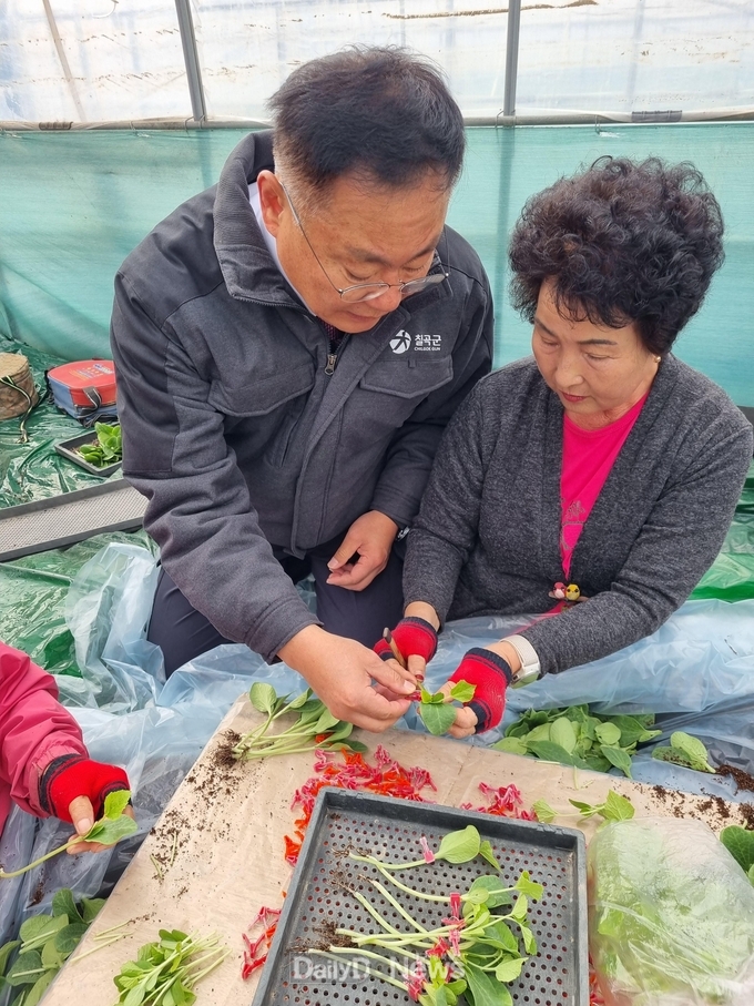 김재욱 군수는 사과 수확이 한창인 시기에 농가를 찾아 일손을 격려하고, 현장에서 직접 사과 수확 과정을 살피며 농업인의 노고에 감사의 뜻을 전했다. 이어 참외 접목 현장을 방문해 접목 작업 과정을 살펴보고 재배 현황과 현장 애로사항을 청취했다.