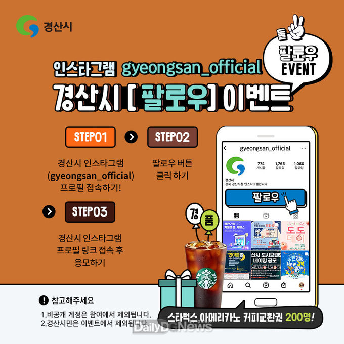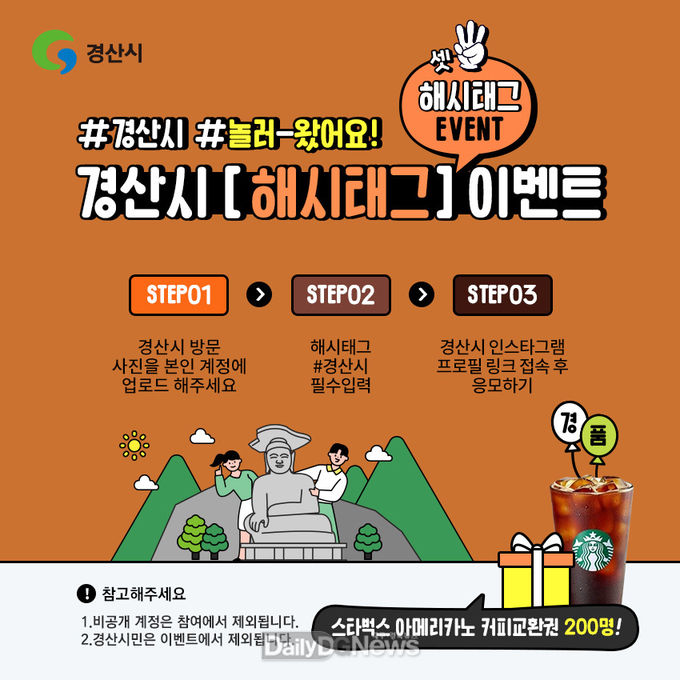 (데일리대구경북뉴스=황지현 기자)경산시(시장 조현일)는 8월 8일부터 10월 31일까지 경산시 인스타그램을 활용하여 경산관광 감성마케팅 SNS 관광 이벤트를 진행한다.