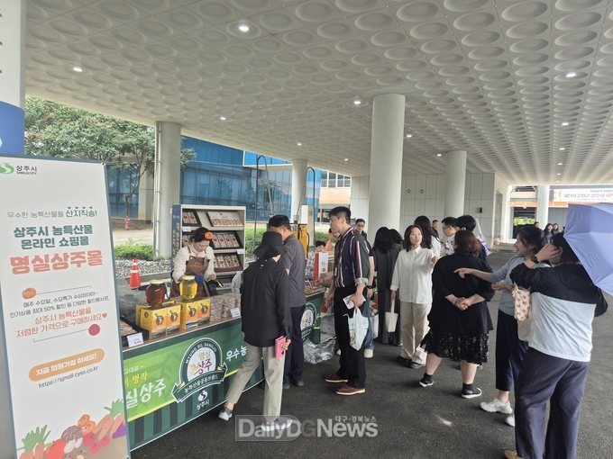 (데일리대구경북뉴스=황지현 기자)상주시(시장 강영석)는 9월 30일 식품의약품안전처 본부동 주차장에서 식약처, 질병관리청 등 6개 중앙부처기관 3,200여 명의 직원들을 대상으로 ‘지방살리기 상생 자매결연 농특산품 직거래장터’를 운영했다.