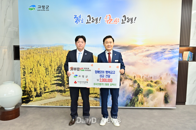 (데일리대구경북뉴스=황지현 기자)성서산업(주)(대표 김덕수)은 나눔으로 행복한 세상을 만들기 위해 10월 10일 고령군청을 방문하여 함께모아 행복금고 성금 200만원을 기탁했다.