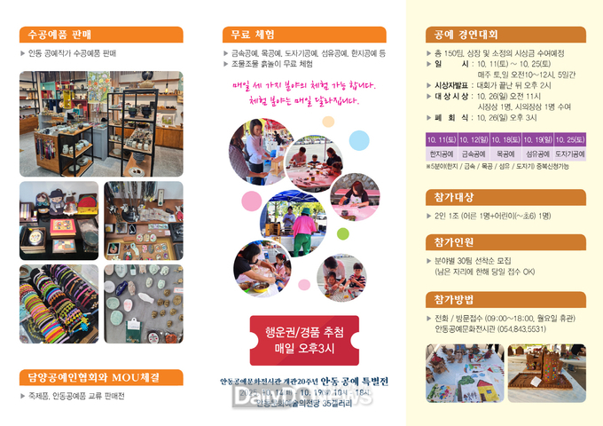 이번 행사는 10월 11일부터 26일까지 매주 주말, 안동공예문화전시관 앞마당(안동시 석주로 245)에서 열린다.
