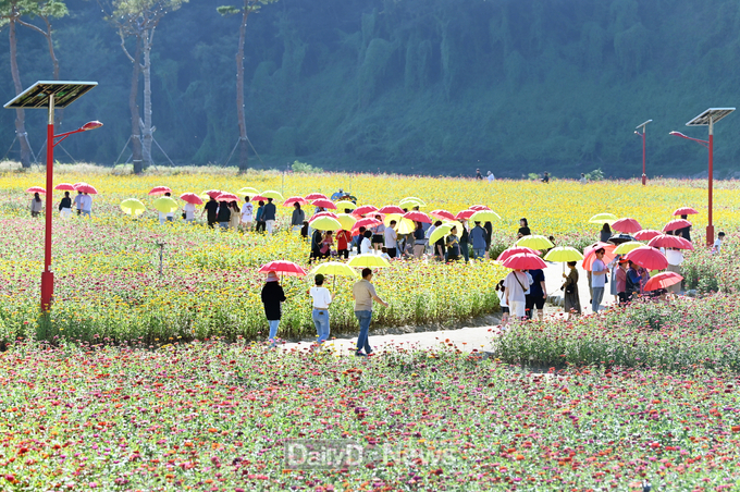 ‘산소카페 청송정원’은 2021년 시범단지 개장을 거쳐 2022년 정식 개장된 이후, 매년 지역주민들과 함께 백일홍 단지를 정성껏 가꿔왔다. 그 결과 매년 9월부터 10월까지 약 두 달간 10만 명이 넘는 관광객이 찾고 있으며, 특히 올해 추석 연휴 기간에는 5만 명 이상의 방문객이 몰려 문전성시(門前成市)를 이루었다.