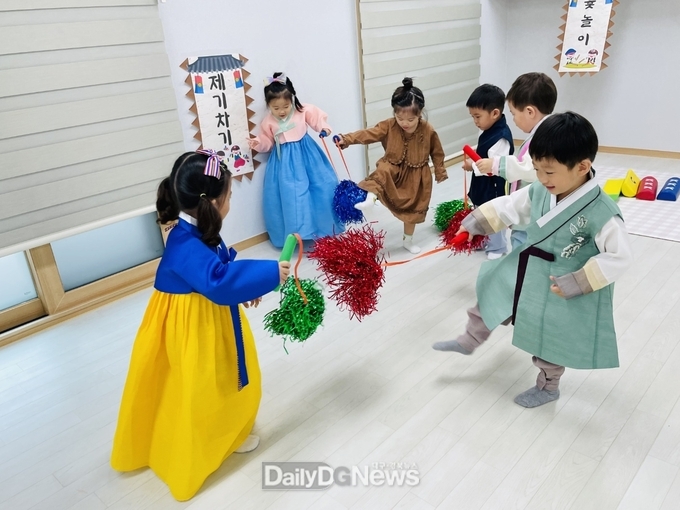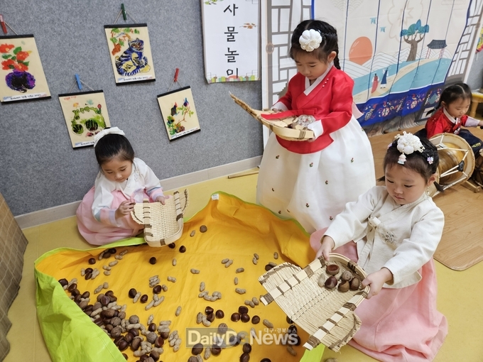 어린이집에서는 추석 명절을 맞이하여 한복을 차려입고 송편 만들기, 전 만들기, 차례 지내기, 전통 민속놀이 체험하기 등 다양한 프로그램을 진행하며 풍성한 음식을 나누고 가족과 함께하는 명절의 의미를 되새기는 시간을 가졌다.