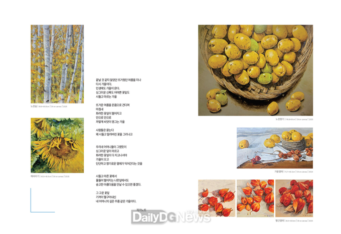 이번 전시는 ‘익어가는 계절, 물드는 삶’이라는 주제로, 해바라기와 노란 감, 붉은 꽈리 등 가을의 정취를 담은 회화 작품 20여 점을 선보인다.