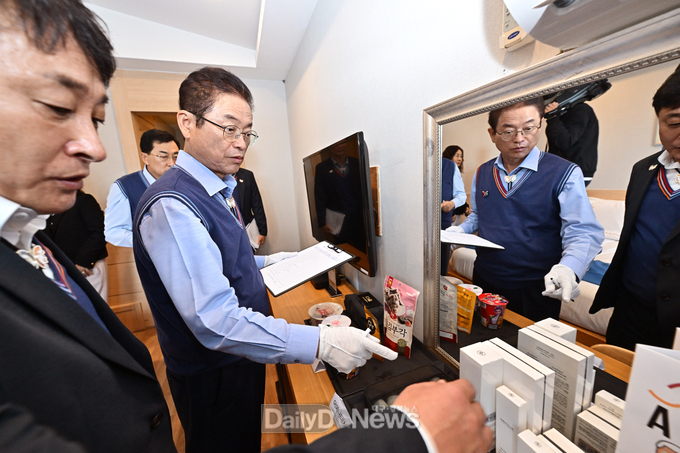 곧이어 이 도지사와 주 시장은 직접 ‘객실 점검 체크리스트’를 활용해 객실 점검에 나섰다. 객실 내 냄새, 카펫트 오염 여부, 냉장고 이상 여부, 욕실 위생 상태, 수압, 변기 상태 등을 세밀하게 점검했으며, 실내 공기 질 검사와 소화기, 화재감지기 등 안전 항목도 함께 확인했다.