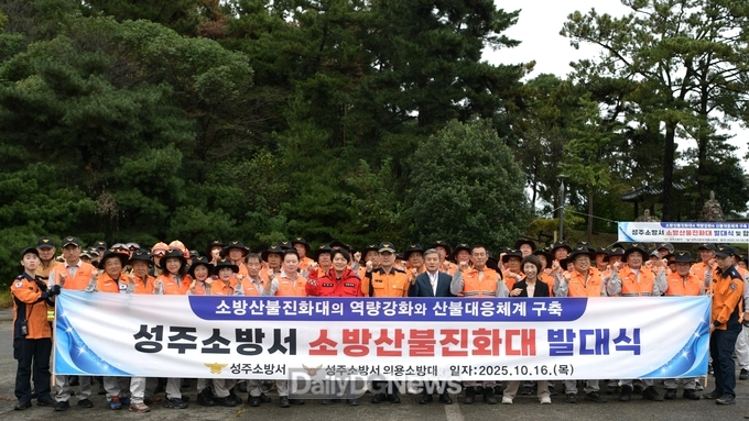 (데일리대구경북뉴스=황지현 기자)성주소방서(서장 김두형)는 10월 16일, 성주군 삼산산림욕장에서 ‘성주소방서 소방산불진화대 발대식’을 개최하고 산불 진화 훈련을 실시하는 등 본격적인 산불 대응 체계에 돌입했다.