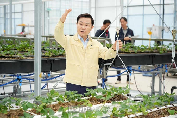 (데일리대구경북뉴스=황지현 기자)고령군(군수 이남철)은 10월 14일 고령군농업기술센터 딸기육묘장을 방문해 2025년산 딸기 우량모주 생산 추진 현장을 점검했다.