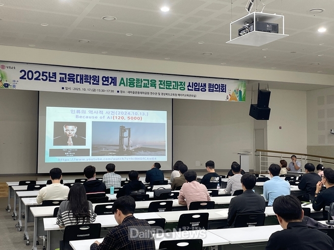 (데일리대구경북뉴스=황지현 기자)경북교육청(교육감 임종식)은 10월 17일 구미시에 있는 새마을운동테마공원 연수관에서 AI융합교육 전문과정 신입생 45명을 비롯해 졸업생과 관계자 등 60여 명이 참석한 가운데 ‘2025년 교육대학원 연계 AI융합교육 전문과정 신입생 협의회’를 개최했다.