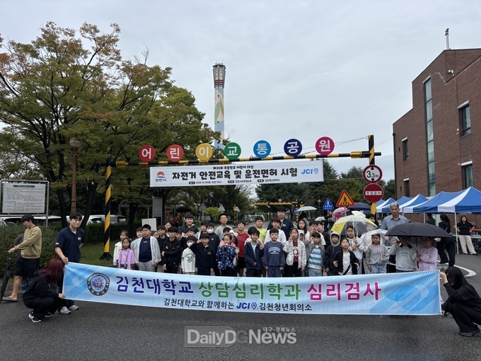 또한, 자전거 실기시험을 통해 자전거 운행을 직접 체험하고 교통안전 수칙을 배우며 안전에 대한 인식을 함께 높였으며 김천대학교 미술 심리치료 상담학과에서 심리테스트 및 그림 치료를 준비하여 행사에 참석한 어린이와 학부모들에게 색다른 경험도 제공했다.