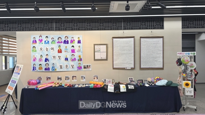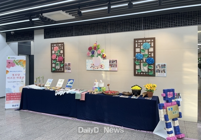전시 작품은 어르신들이 직접 그린 자화상, 공예품, 손뜨개, 종이 꽃꽂이 등 100여 점으로, 세대와 세대를 잇는 따뜻한 정서와 삶의 지혜가 담겨 있다.