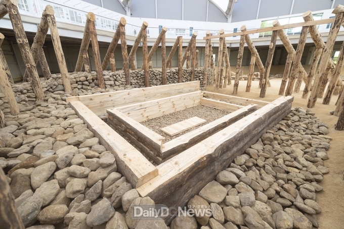 현재는 무덤 주인공의 시신과 부장품을 안치한 이중 덧널 일부를 완성한 뒤, 주변에 돌을 쌓는 과정(전체 21단계 중 8단계)까지 진행된 상태다.