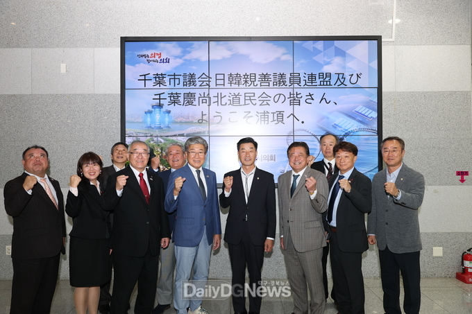 (데일리대구경북뉴스=양승미 기자)=포항시의회(의장 김일만)은 22일 오전 의장실에서 치바시의회 한일친선의원연맹 소속 의원들과 치바경북도민회 회원들의 예방을 받고 환담을 가졌다.