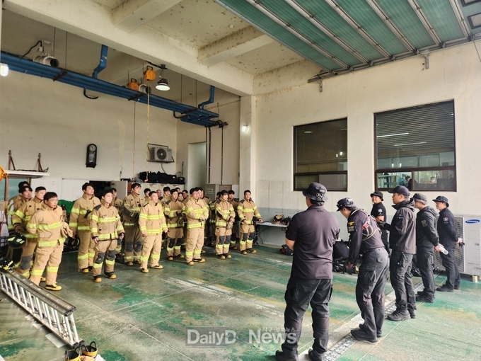 주요 훈련 내용으로는 △3D 주수법 및 도어 엔트리(Door Entry) △협소공간 호스 전개 방법 △소방관 자력 탈출법 △동료소방관 구조기법 등 실전 중심의 프로그램이 진행되어 실제 화재 현장에서의 즉각적 판단력과 전술적 팀워크를 향상시키고, 위급한 상황에서도 안전하게 인명과 재산을 보호할 수 있는 실전 대응 능력을 강화했다.