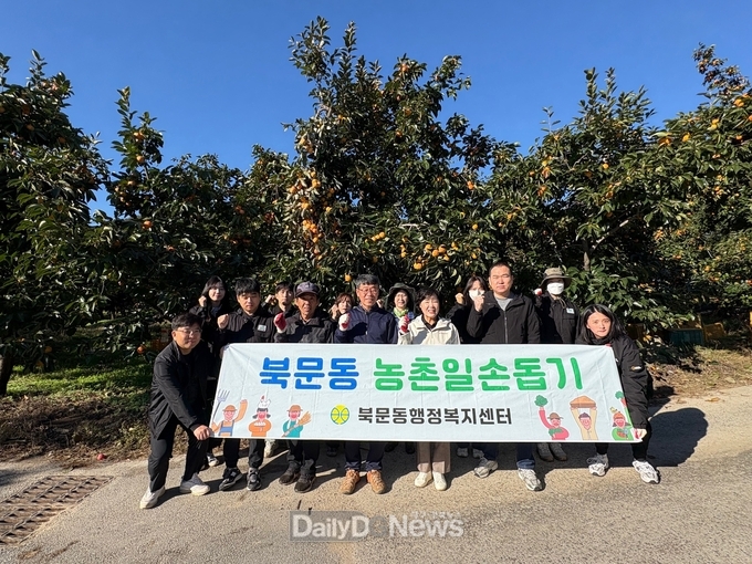 (데일리대구경북뉴스=황지현 기자)상주시 북문동 행정복지센터(동장 신종원)는 10월 28일 일손 부족으로 감 수확에 어려움을 겪고 있는 고령 농가를 돕기 위해 농촌 일손 돕기를 실시했다.