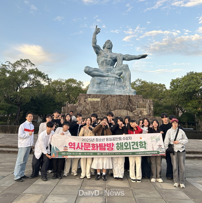 (데일리대구경북뉴스=양승미 기자)=(사)봉화군교육발전위원회는 지난 27일부터 31일까지 5일간 관내 3개 고등학교 통일골든벨 수상자 25명을 대상으로 ‘2025년 청소년 해외 역사문화탐방’을 진행했다.