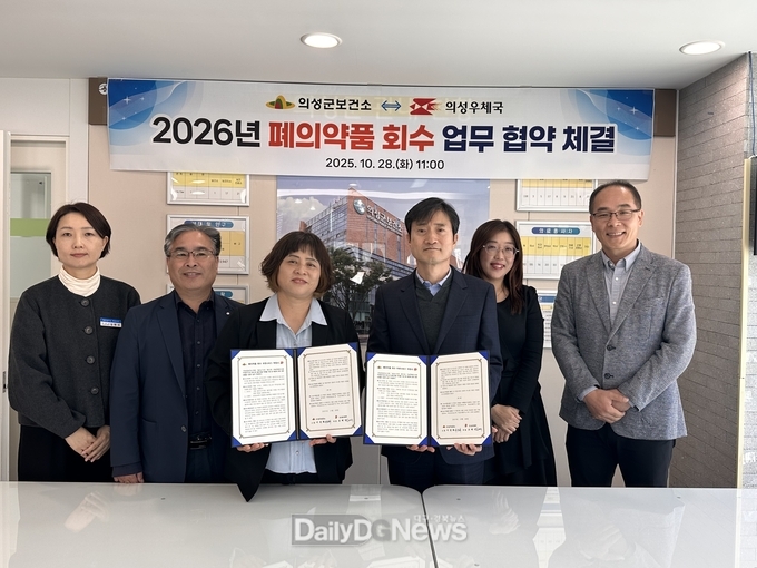 (데일리대구경북뉴스=김형만 기자)의성군(군수 김주수)보건소와 의성우체국은 10월 28일 폐의약품의 안전한 회수와 환경오염 예방을 위한 ‘폐의약품 회수 업무협약’을 체결했다.