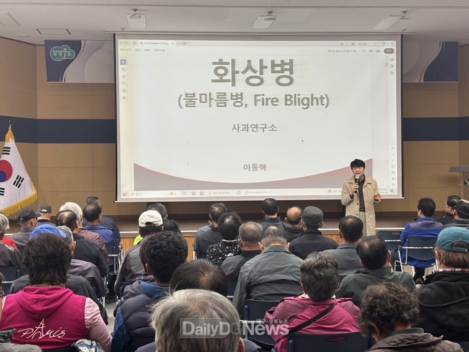 (데일리대구경북뉴스=황지현 기자)상주시농업기술센터(소장 김정수)는 사과, 배 농업인을 대상으로 과수화상병 교육을 10월 29일부터 31일까지 3일간 농업기술센터 대강당에서 실시한다. 상주시 사과, 배 재배면적은 831ha, 1,472호로 주요 소득작물로 자리잡고 있다.