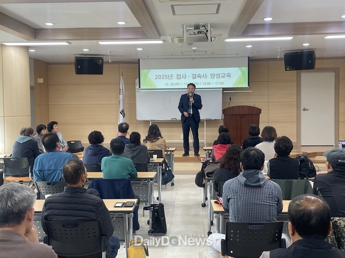(데일리대구경북뉴스=황지현 기자)경산묘목영농조합법인(대표 정희진) 주관으로 10월 30일부터 11월 27일까지 매주 화‧목요일 주 2회에 걸쳐 경산시종묘기술개발센터에서 2025년 접사·결속사 양성 교육을 실시한다.