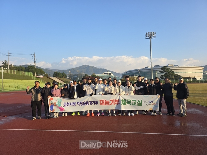 (데일리대구경북뉴스=황지현 기자)김천시(시장 배낙호)는 11월 2일 오전 7시 30분, 김천종합스포츠타운 보조경기장에서 시청 직장운동경기부 육상단과 함께 ‘시민 재능기부 체육교실(2차)’을 열었다.