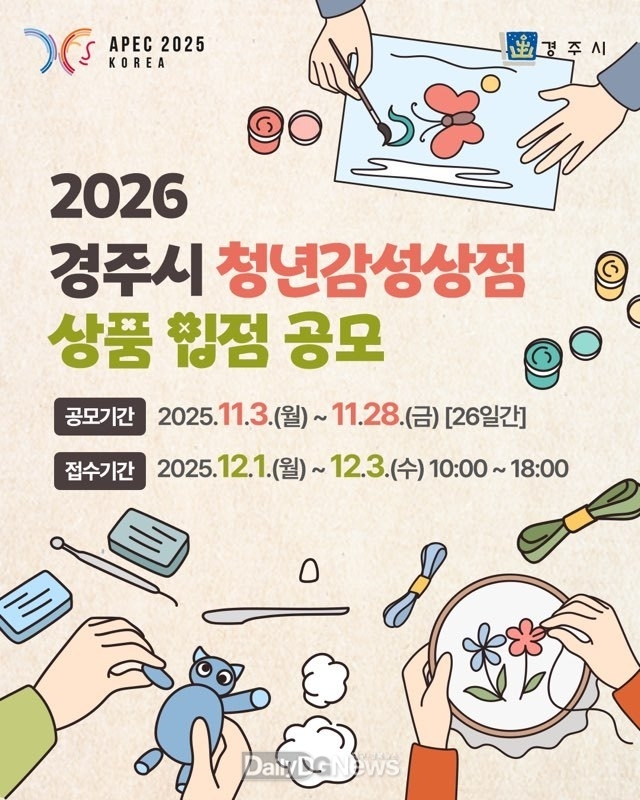 (데일리대구경북뉴스=양승미 기자)=경주시는 지역 청년 창작자의 참신한 아이디어를 발굴하고, 이를 상품화해 경주만의 문화 브랜드로 확산하기 위한 ‘2026 청년감성상점 상품 입점 공모전’을 개최한다.