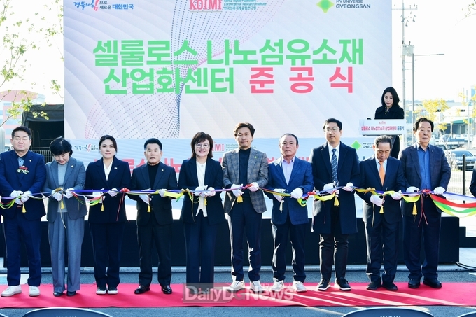 (데일리대구경북뉴스=김형만 기자)경상북도는 11월 4일 양금희 경제부지사, 조현일 경산시장, 도·시의회 의원, 관련 기업 대표와 관계 기관장 등 100여 명이 참석한 가운데, 경산시 진량읍 경산4일반산업단지에 구축한 셀룰로오스 나노섬유 소재 산업화 센터 준공식을 개최했다.