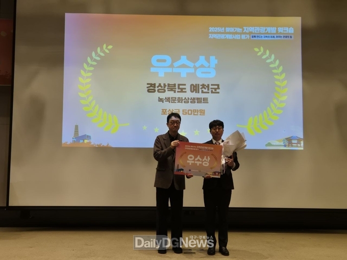(데일리대구경북뉴스=황지현 기자)예천군(군수 김학동)은 ‘2025년 찾아가는 지역관광개발 워크숍’에서 ‘녹색문화 상생벨트(삼강문화단지 조성사업)’이 지역관광개발사업 우수상을 수상했다.