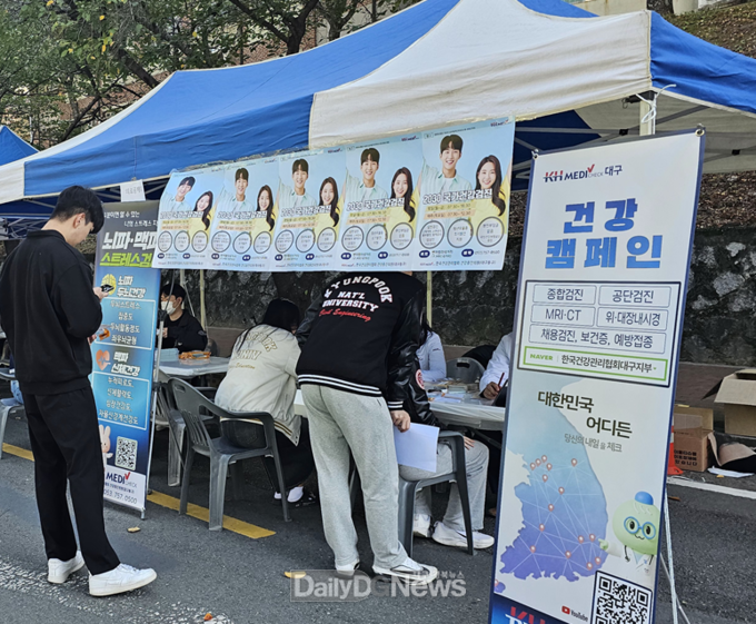 (데일리대구경북뉴스=황지현 기자)한국건강관리협회 대구광역시지부(본부장 김태욱, 이하 건협대구)는 지난 10월 29일부터 31일까지 3일간 경북대학교 대동제 행사에서 학생과 지역주민들을 위한 건강 캠페인을 실시했다.