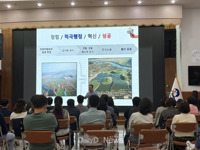 최덕림 강사는 30여 년의 공직 경험을 바탕으로 자신이 추진했던 정책과 현장의 혁신 사례를 소개하며, 행정이 변하면 도시가 바뀐다는 메시지를 전했다.