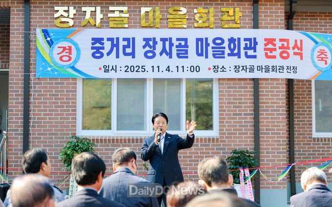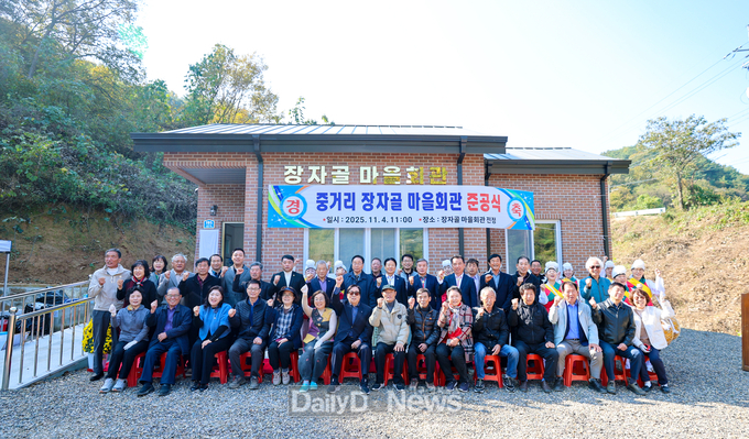 신축된 중거리 장자골 마을회관은 총사업비 2억여 원으로 2025년 3월에 착공하여 9월에 준공하였으며, 대지면적 605㎡, 건축면적 56.89㎡ 규모로 건립됐다.