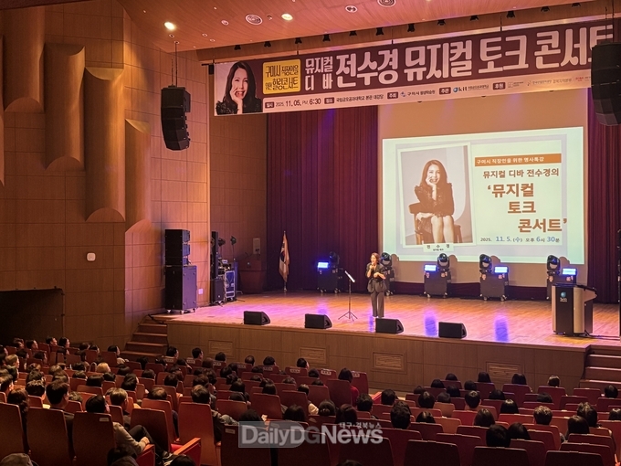 (데일리대구경북뉴스=황지현 기자)구미시는 11월 5일 오후 6시 30분, 금오공과대학교 본관 대강당에서 기업체 근로자와 시민 등 700여 명이 참석한 가운데 뮤지컬 배우 전수경의 ‘Musical is Life’를 주제로 특강을 개최했다.