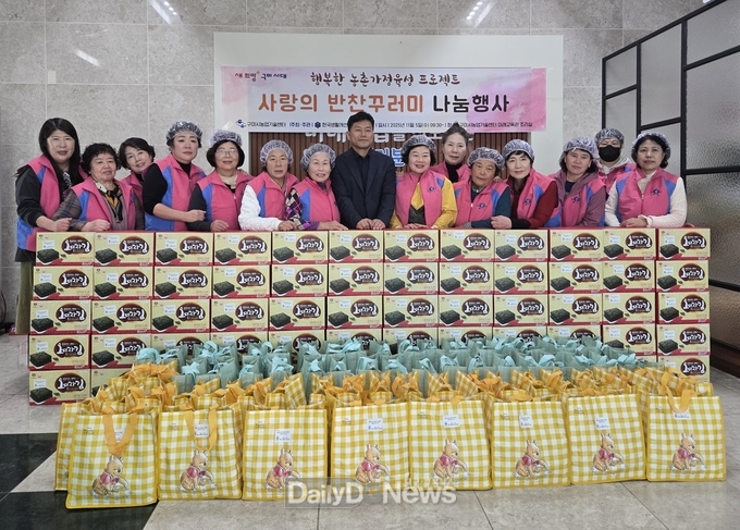(데일리대구경북뉴스=황지현 기자)한국생활개선구미시연합회(회장 권명희)는 11월 5일 임원 및 읍·면·동 회장 15명이 참여한 가운데 ‘행복한 농촌가정 육성 프로젝트’의 일환으로 반찬 나눔 봉사활동을 펼쳤다. 이번 봉사는 관내 취약계층 60가구에 따뜻한 식탁을 선물하기 위해 마련됐다.
